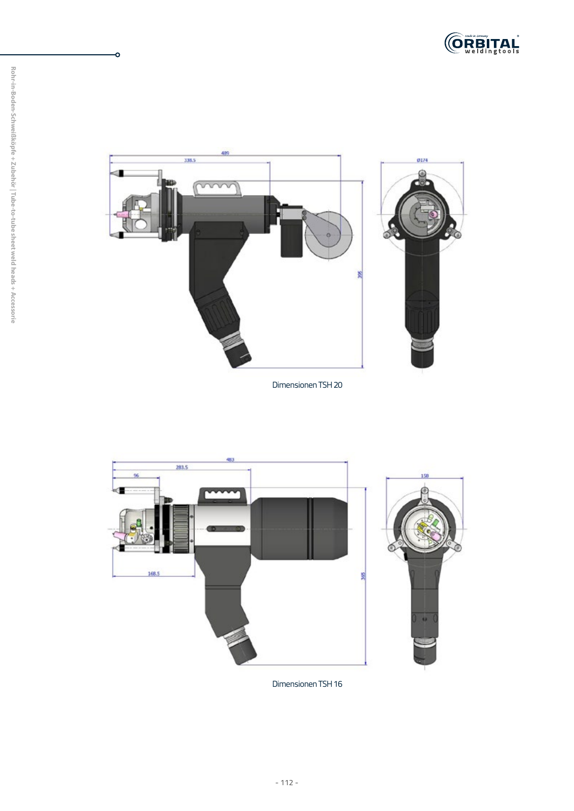 112 113 R oh r in B od en Schw eiß köp fe Zu b eh ör Tu b e to tu b e sh eet w eld h ead s A ccessorie Dimensionen TSH 20 Dimensionen TSH 16
